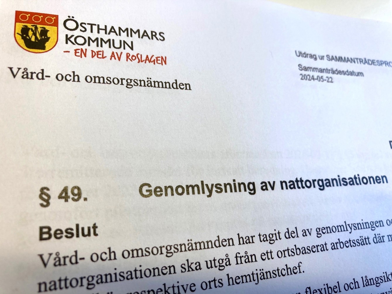 Vid Vård- och omsorgsnämndens sammanträde den 22 maj 2024 fattade nämnden beslut om att nattorganisationen ska utgå från ett ortsbaserat arbetssätt, där medarbetarna fördelas per ort under respektive orts hemtjänstchef.