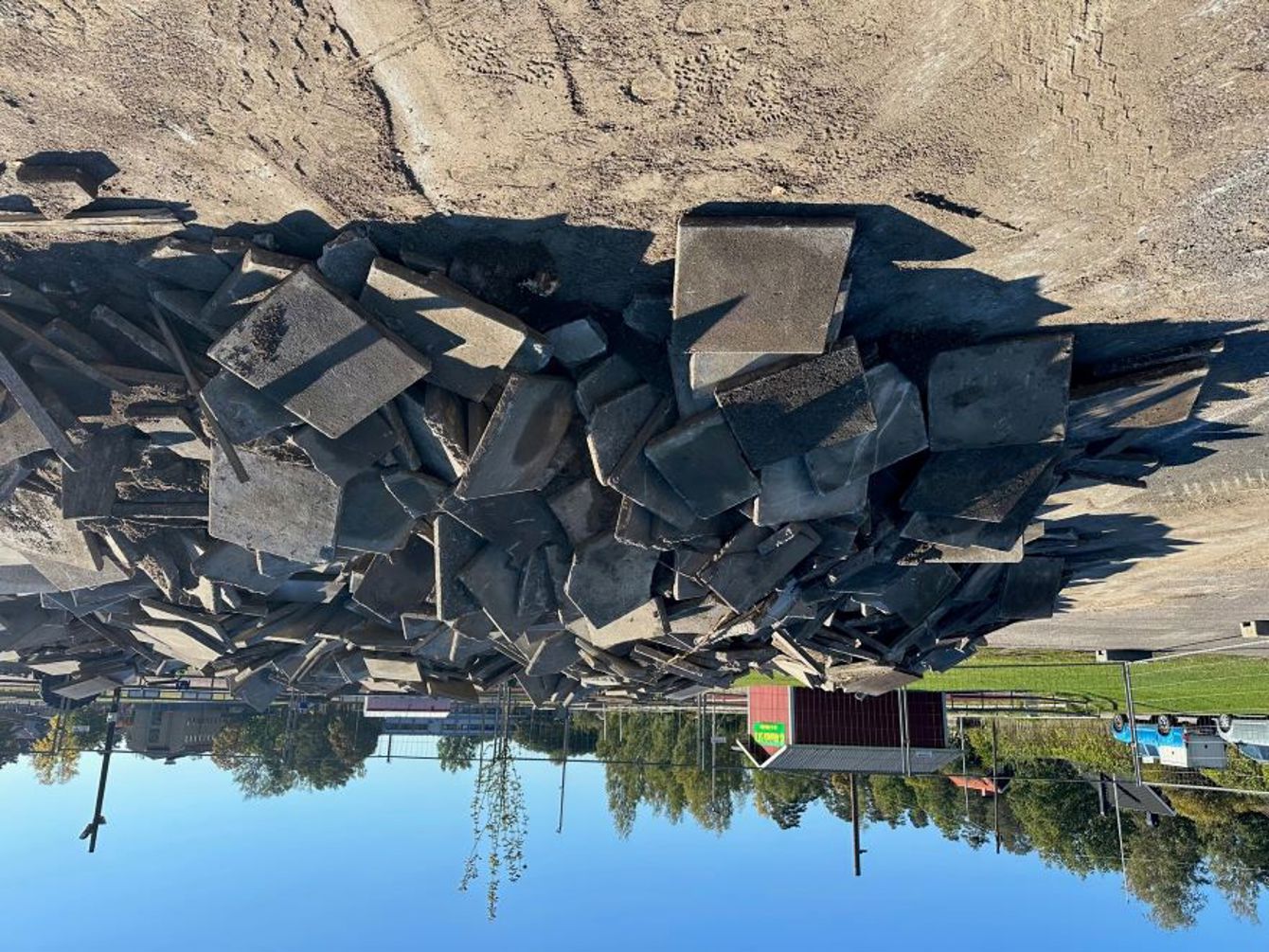Östhammars kommun erbjuder gratis trädgårdsplattor av betong som blivit över vid renoveringen av Alundabadet. Plattorna är 50x50x5 cm och har täckt en yta på 500 kvadratmeter. En del är trasiga så sortering görs på egen hand.