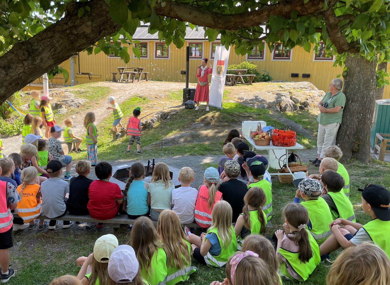 Dagen bjöd på fantastiskt sommarväder när barn från förskolorna Skutan och Sjöstjärnorna samt Öregrunds skola samlades för att inviga den upprustade och förnyade lekplatsen med sjötema vid Klockstapeln. Det var tal, glada barn, allsång med Jennifer Grahn, fika, såpbubblor och massor av lek förstås!