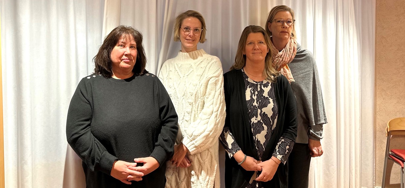 Fotnot: På bilden ses hemtjänstens enhetschefer. Från vänster Siw Kytömäki, enhetschef Hemtjänst Öregrund, Lizette Svahn, enhetschef Hemtjänst Alunda, Gabriella Svanberg, enhetschef Hemtjänst Östhammar Norra, och Anneli Jansson Sumén, enhetschef Hemtjänst Östhammar Södra. Saknas på bilden gör Veronica Persson, enhetschef Hemtjänst Österbybruk och Victoria Cordova, enhetschef Hemtjänst Gimo.
