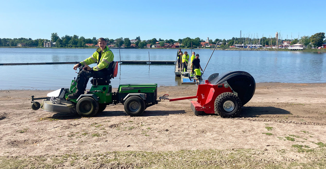 Effektivare och bättre för ryggen. Så sammanfattar Anders Hedberg vid tekniska kontoret fördelarna med kommunens nya maskin som ska ta bort fågelbajs vid badplatserna.