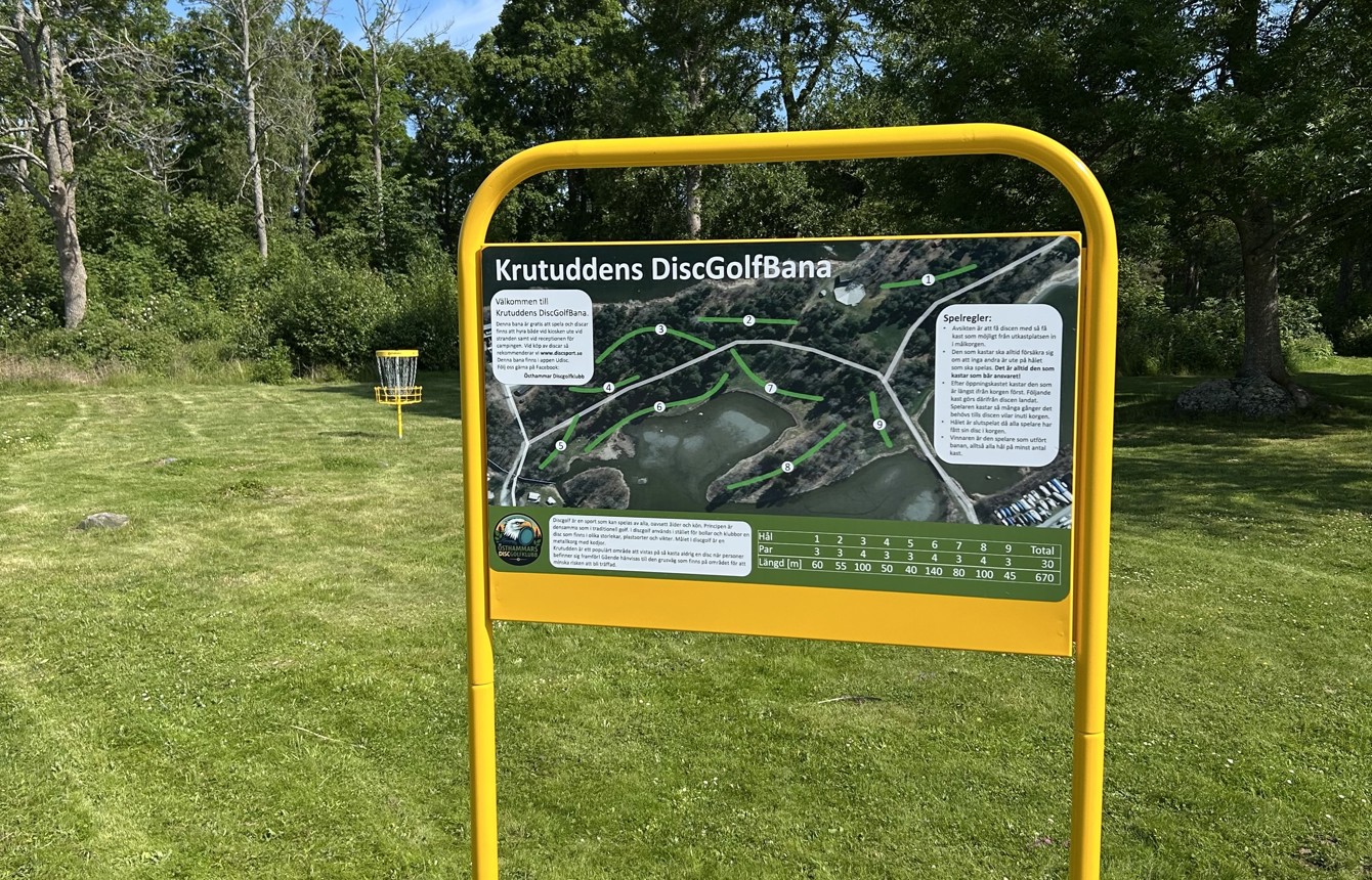 En ny discgolfbana har öppnat på Krutudden i Östhammar. Bakom satsningen står den nystartade föreningen Östhammars Discgolfklubb , som med stöd från Föreningslyftet, sponsorer och kommunen förverkligat sin idé – en bana som nu är öppen för alla.