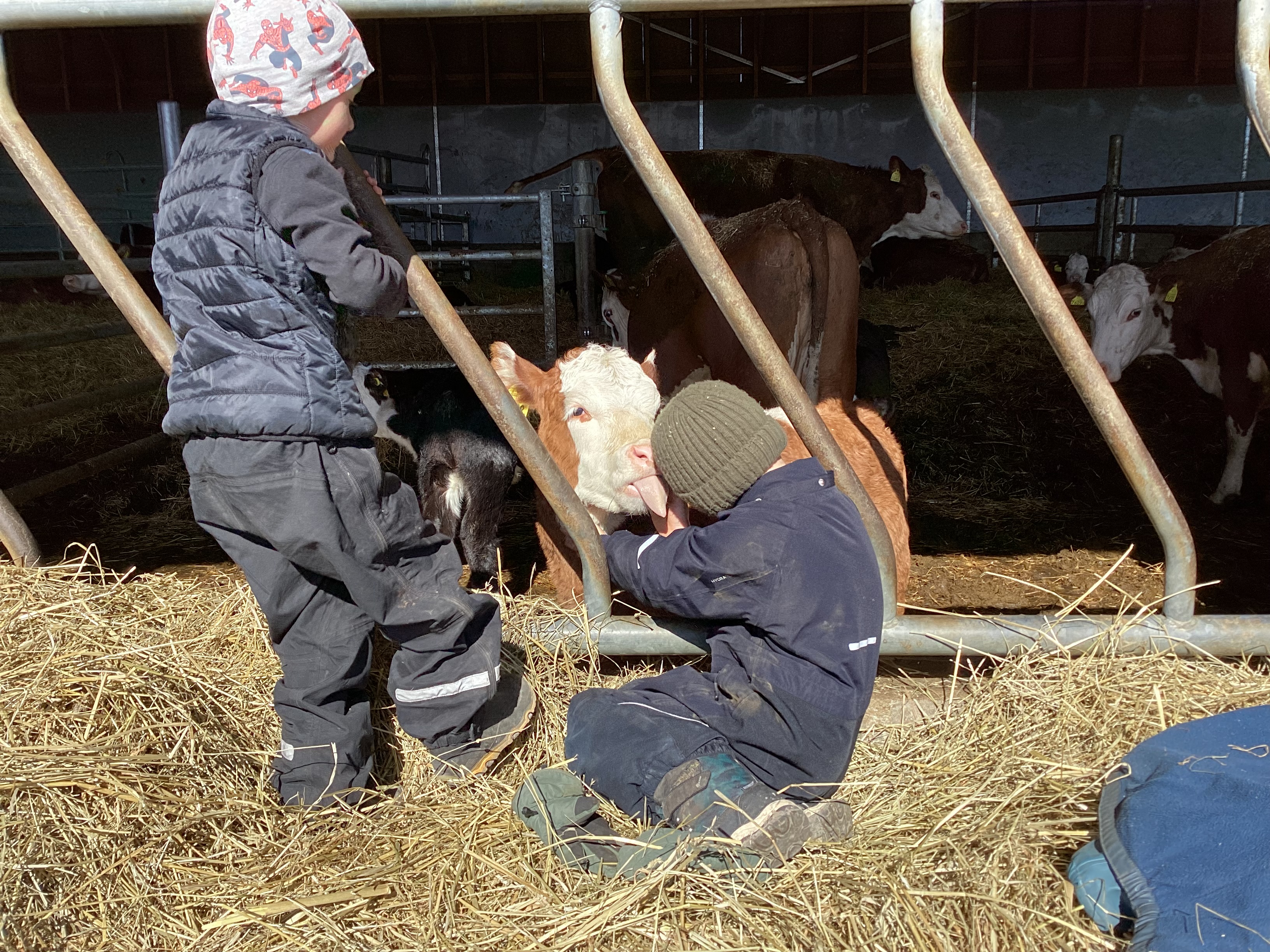 Under dagen gick resan vidare till Ängsgrind där barnen fick träffa flera olika djur, som kor, kalvar, får, höns och ankor. Några av korna var extra sociala och kom gärna fram för att hälsa och gosa med barnen.