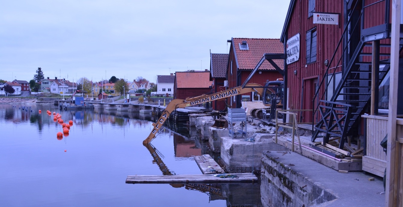 Arbetet med den nya gångbryggan i Öregrunds hamn är i full gång.