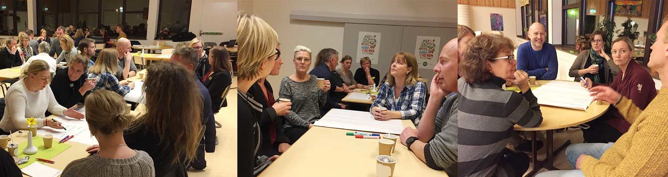 Kvällen inleddes med att Håkan Blom, rektor på Frösåkersskolan, och Lasse Karlsson, från tekniska förvaltningen, berättade om arbetet som gjorts i projektet hittills och hur arbetet kommer att göras framåt. Sedan blev det dags för fika och diskussion i mindre grupper på frågan om hur vi kan göra så bra lärandemiljöer som möjligt på nya Frösan.
