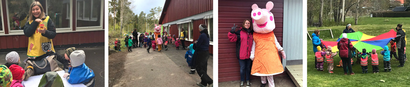 – Dagen har varit mycket lyckad! Entusiastiska barn, engagerade pedagoger och ett fint väder. Höjdpunkten för barnen hos oss var nog när Greta Gris kom och hälsade på som avslutning av firandet, säger Jenny.