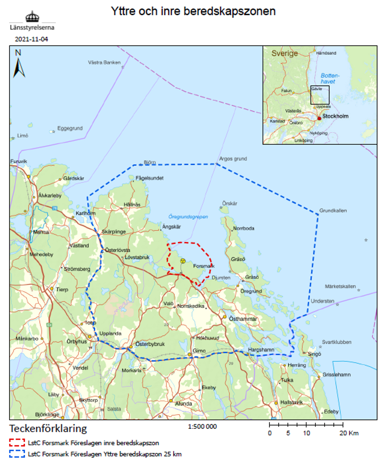Regeringen har beslutat om nya beredskapszoner för svenska kärnkraftverk från och med den 1 juli 2022. Arbetet med förändringarna påbörjades 2017 efter att Strålsäkerhetsmyndigheten (SSM) presenterat en utredning som analyserat erfarenheter efter kärnkraftsolyckan i Fukushima i Japan 2011. Förändringen innebär att det ska finnas en inre och en yttre beredskapszon med en ungefärlig sträckning på 5 respektive 25 kilometer runt kärnkraftverket. Det är områden där länsstyrelsen tillsammans med andra myndigheter förbereder olika skyddsåtgärder.