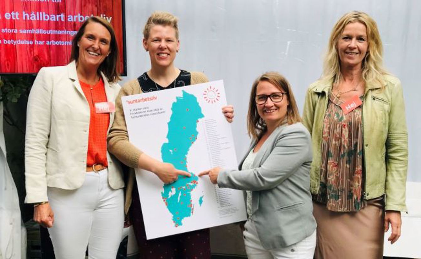 Östhammars kommun finns med på kartan över alla kommuner som jobbat med friskfaktorer tillsammans av Suntarbetslivs resursteam. Deras resursteam var också på plats i Verkstan och det var första gången som Sofia och Jenny fick träffa teamet i verkligheten, eftersom samarbetet har bedrivits helt digitalt sedan starten i januari 2020. På bilden syns Petra Bollvik, Jenny Nolin, Sofia Lindgren och Victoria Magnusson.