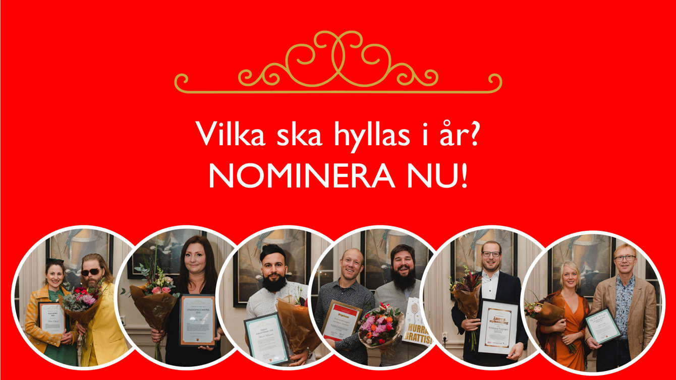 Nu drar vi igång årets nomineringsprocess. Mellan 10 maj och 12 juni kan du skicka in nomineringar i 10 olika kategorier - allt från engagerade eldsjälar till kreativa entreprenörer och vardagshjältar.