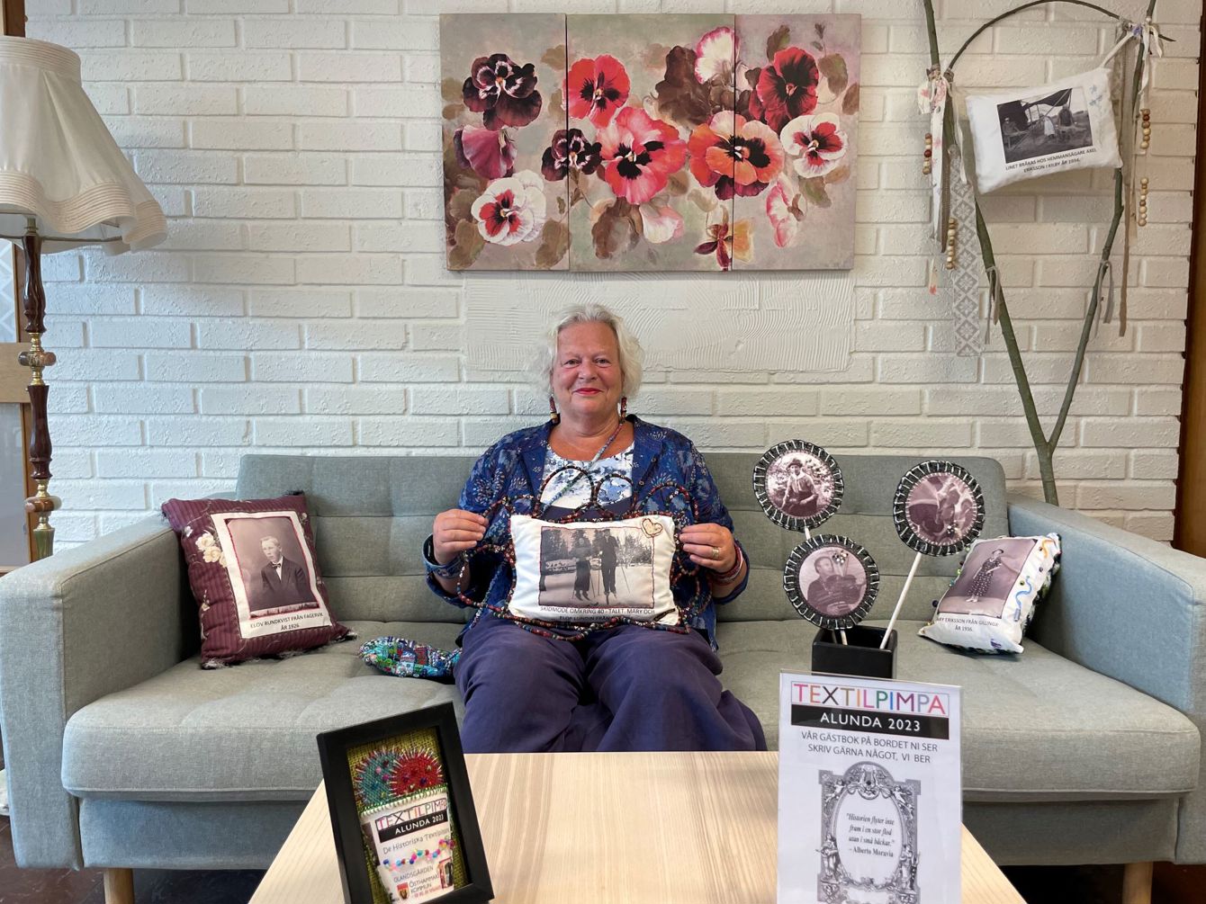 – Inspirationen och grundidén med att Textilpimpa Alunda år 2023 kommer från ”Olands hembygdsgille” som idag funnits i 100 år. De har i ändamål att väcka, stärka och fördjupa kärleken till och själva kunskapen om hembygden, något jag snappade upp och ville efterlikna. Genom konst kan vi väcka gamla minnen och visualisera hur vår dåtid såg ut och på så sätt leva kvar i gamla minnen, förklarar Eva.