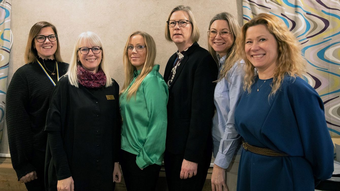 På bilden ser ni deltagarna från Ledararenan 2022 och deras chefer/mentorer. Från vänster Helena Lindevall med sin chef Helena Åsberg, Frida Baron med sin chef Anneli Jansson Sumén och Hanna Horneij med sin mentor Pauliina Lundberg.