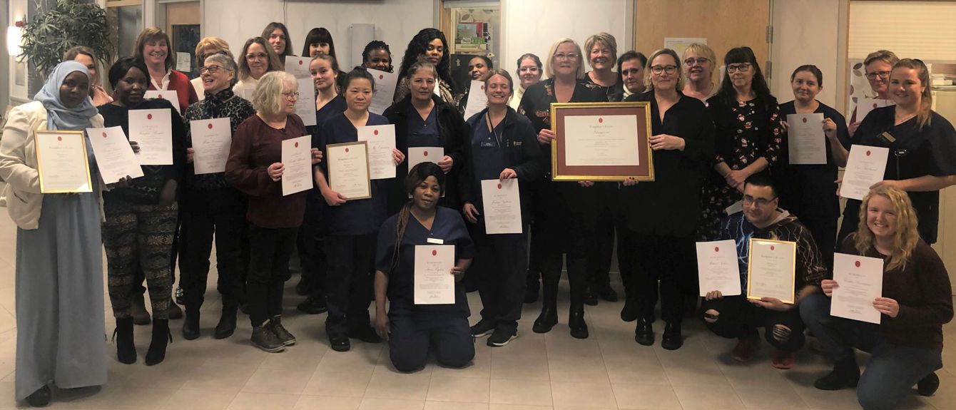 – Vi är mycket stolta över vår personal som genomfört denna utbildning och vi ser vinsterna av den fantastiska kvalitetshöjning det innebär för våra boende, säger enhetscheferna Lena Wallström och Mari Karlsson på Edsvägen 16 och Carina Lövén på Parkvägen.