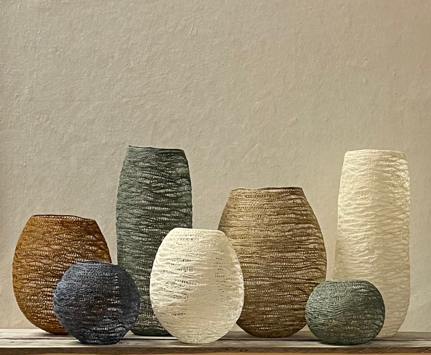 Anna visar skulpturer i både sten och lintråd samt oljemålningar.