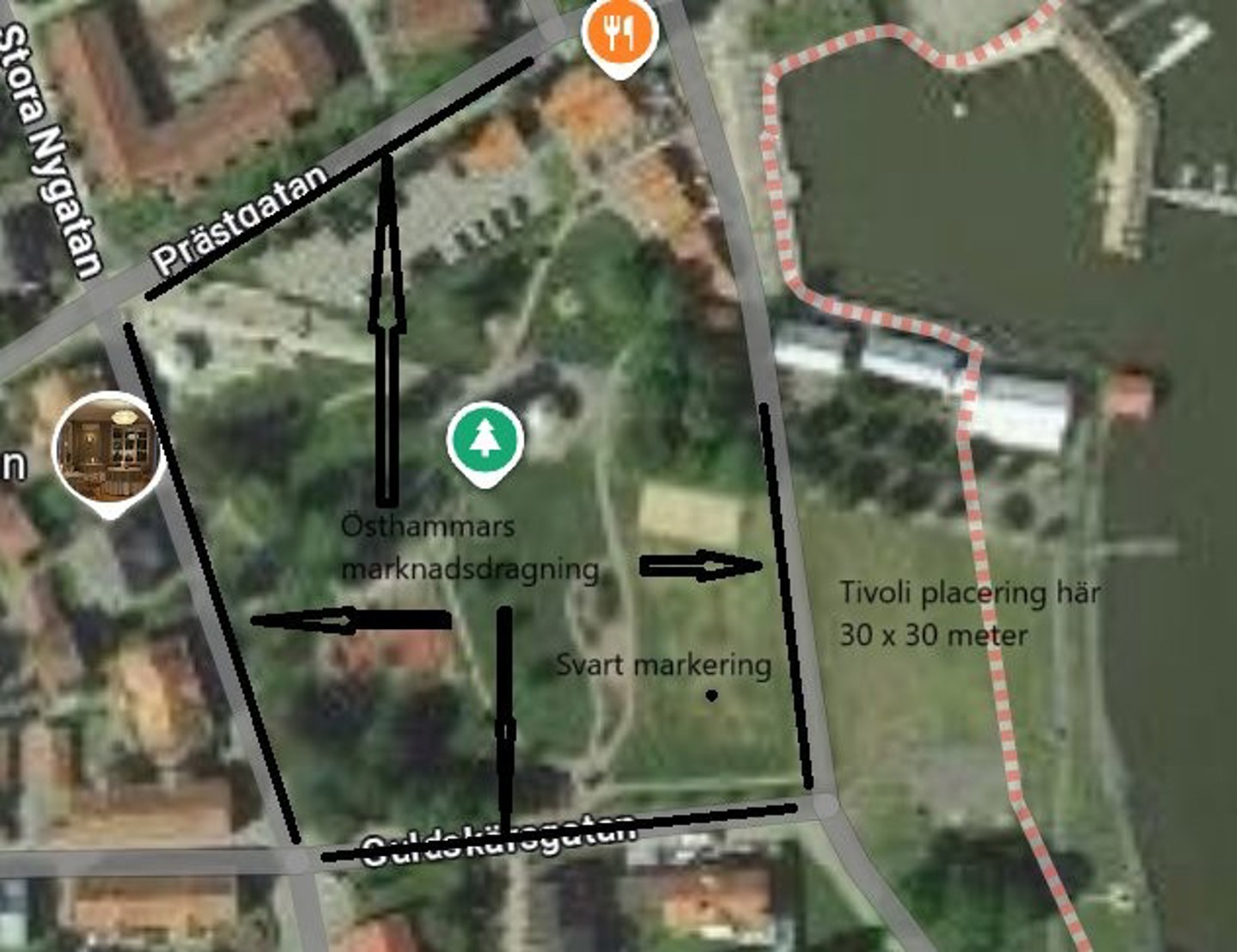 Knallar och lokala leverantörer säljer sina produkter. Berglunds tillhandahåller tivoli, lotterier mm. Lokala orienteringsklubben erbjuder fika med smörgåsar och hembakt kaffebröd.
