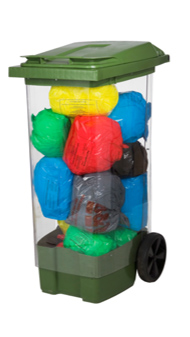 Tvåfackskärl innebär totalt tre kärl vid huset. Matavfall, restavfall och ett för papper- och plastförpackningar.