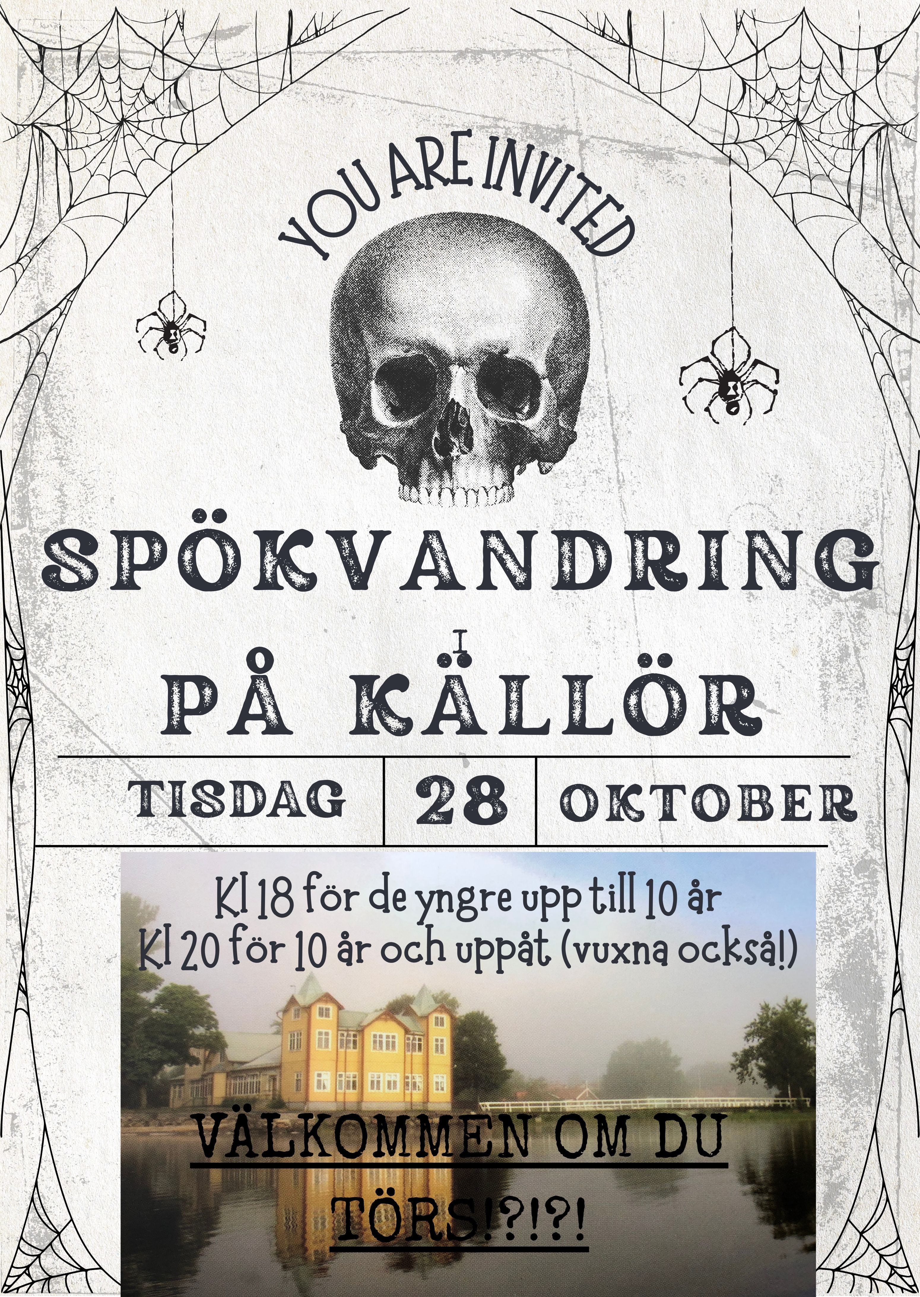 Spökvandring utomhus vid Källör för två olika åldersgrupper: Kl 18 för yngre barn upp till 10 år Kl 20 för de över 10 år… läs mer inne i evenemanget